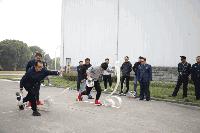為使公司全體員工提高安全防范意識,增強(qiáng)自我保護(hù)能力,掌握對突發(fā)火災(zāi)的應(yīng)變、學(xué)會滅火以及有序的進(jìn)行人員、財(cái)物的疏散處理。11月13日,我公司組織開展了2019年度“119”消防技能競賽演練活動?,F(xiàn)場邀請姜堰區(qū)消防大隊(duì)參謀張志來及集團(tuán)公司黨委副書記朱善意參加并擔(dān)任評委,各部門、車間共20余名員工參加此次活動。