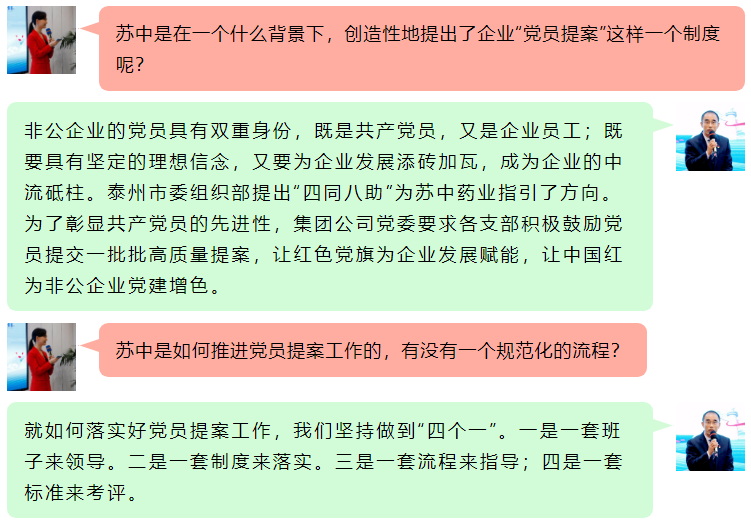 臺上三分鐘,臺下十年功。2005年至今,蘇中藥業(yè)集團關(guān)于“黨員提案”的過程都以照片和視頻的方式記錄保存,這段視頻展現(xiàn)了蘇中藥業(yè)深厚的企業(yè)黨建文化底蘊。