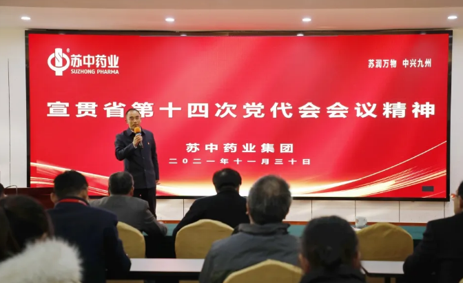 為深入學(xué)習(xí)貫徹落實中國共產(chǎn)黨江蘇省第十四次代表大會精神,教育和引導(dǎo)基層黨組織和廣大黨員干部把思想和行動統(tǒng)一到黨代會精神上來,11月30日下午,蘇中藥業(yè)集團(tuán)黨委召開全體黨員擴(kuò)大大會,專題傳達(dá)學(xué)習(xí)省黨代會精神。集團(tuán)黨員及主管級以上一百多人參加會議。會議由黨委副書記朱善意主持。