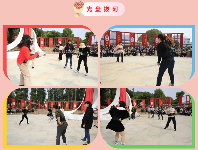 伴隨著熱烈的掌聲,趣味活動正式拉開了帷幕。本次活動設(shè)有光盤拔河、徒手穿褲子、穿針引線、手工DIY四個項目,既有個人競技水平的展示,又有對團隊協(xié)作能力的考驗。賽場上,有趣的游戲一個接一個,本著“友誼第一、比賽第二”的原則,各組隊員充分發(fā)揚團隊集體協(xié)作、默契配合精神。比賽現(xiàn)場趣味盎然,加油聲、歡笑聲此起彼伏,扣人心弦。