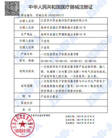 2024年新春伊始,繼取得三款一次性使用電子內窺鏡產品注冊證后,蘇中器械又喜獲一次性使用電子宮腔鏡注冊證。
