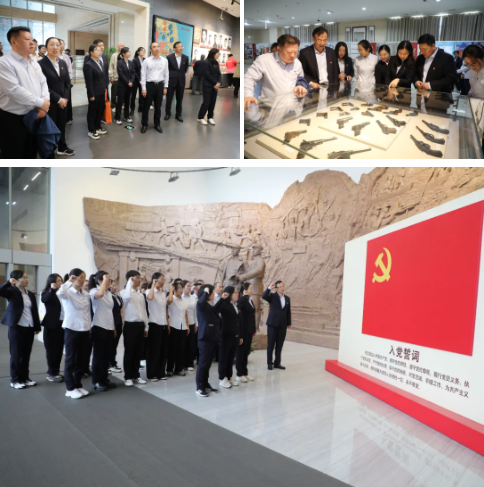 在新四軍黃橋戰(zhàn)役紀念館內(nèi),跟隨講解員的引導,大家透過歷史照片、實物陳列與場景還原,深入了解了黃橋戰(zhàn)役的背景與過程,深刻感悟共產(chǎn)黨人不畏強敵、以少勝多的英勇智慧與革命氣概。面對鮮紅黨旗,全體黨員重溫入黨誓詞,進一步堅定了初心使命。