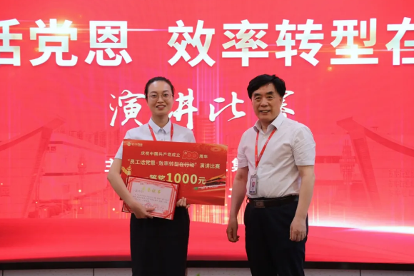 經(jīng)過了選手們新穎獨(dú)特的演講以及評(píng)委們公正的評(píng)分。最終,財(cái)務(wù)管理部干露演講的《創(chuàng)新是我們前行的不竭動(dòng)力》榮獲一等獎(jiǎng); 人力資源部許丹《一百年》、辦公室沈潔《做人民健康的守護(hù)者》榮獲二等獎(jiǎng);信息技術(shù)部景濤《憶百年黨史,造百年蘇中》、人力資源部王虹《學(xué)黨史促蘇中再轉(zhuǎn)型》、固體三車間趙蘭蘭《百年榮光 逐夢(mèng)啟航》榮獲三等獎(jiǎng)。