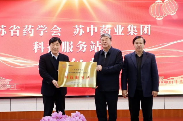 江蘇省科學技術協(xié)會副主席馮少東為江蘇省藥學會&蘇中藥業(yè)集團“科技服務站”授牌