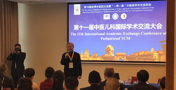 在當(dāng)天下午舉辦的兒科分論壇上,世界中聯(lián)兒科專(zhuān)業(yè)委員會(huì)會(huì)長(zhǎng)、江蘇省中醫(yī)院汪受傳教授致辭并做了《兒童體質(zhì)八分法》報(bào)告。