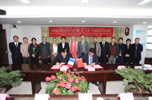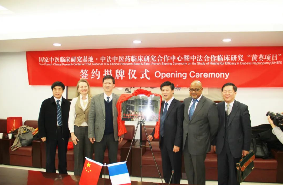 △2014年,國家中醫(yī)臨床研究基地·中法中醫(yī)藥臨床研究合作中心暨中法合作臨床研究“黃葵項(xiàng)目”簽約揭牌儀式